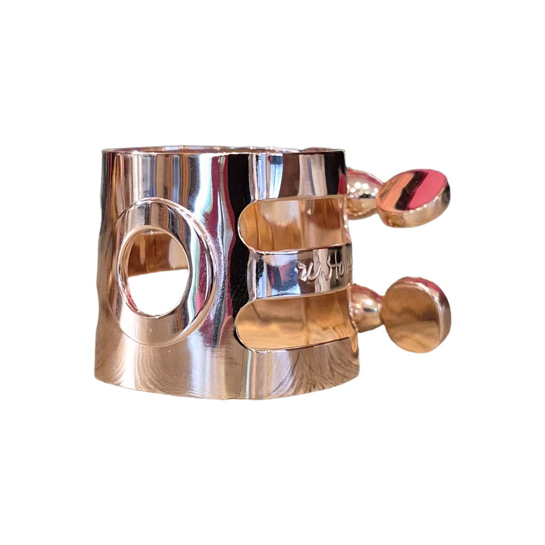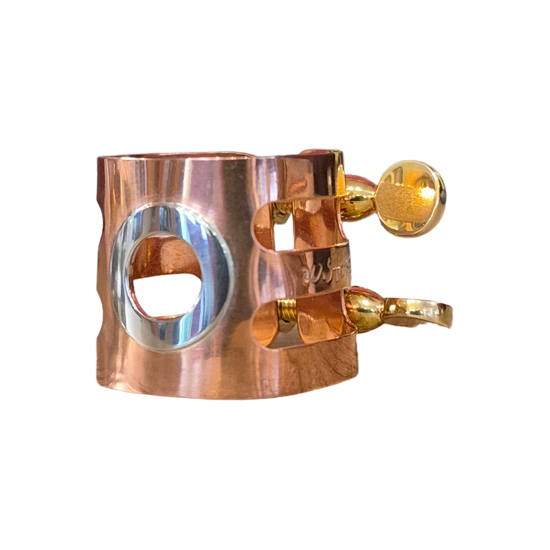 La Wood Stone Ligature para saxofón alto ofrece una vibración libre, excelente proyección y un sonido más rico gracias a su diseño invertido y fabricación artesanal. Compatible especialmente con boquillas tipo Meyer.