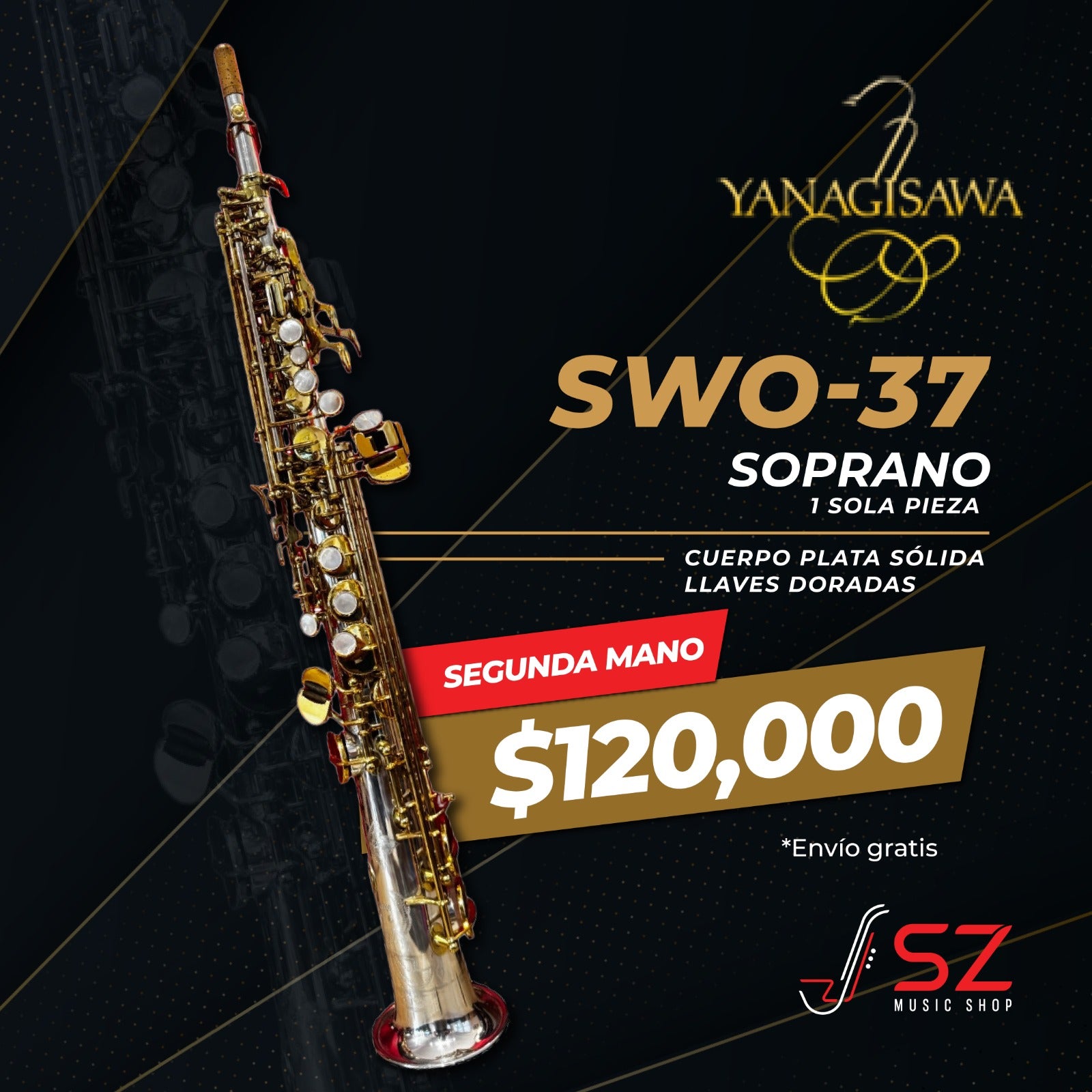 El Yanagisawa SWO37 es un saxofón soprano de la serie Elite, diseñado para músicos avanzados que buscan un instrumento con gran proyección, respuesta ágil y un sonido expresivo.